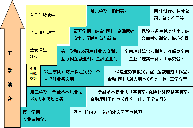 根據(jù)完成投資理財類相關(guān)崗位工作任務(wù)所需要的職業(yè)能力,構(gòu)建校內(nèi)認(rèn)知實訓(xùn)、金融基本業(yè)務(wù)技能實訓(xùn)、綜合理財實訓(xùn)、互聯(lián)網(wǎng)金融理財實訓(xùn)、理實一體化課程、工學(xué)交替課程及頂崗實習(xí)的循序漸進實訓(xùn)實踐教學(xué)體系。實踐教學(xué)體系整體設(shè)計如下圖所示: