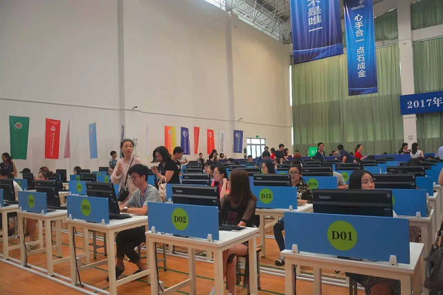 下午4點,參賽選手來到文體中心二樓參觀賽場。賽場分為ABCD四大區(qū)域,A手工點鈔,B傳票算,C字符錄入,D貨幣識假。選手們根據(jù)各自的賽項熟悉賽場環(huán)境。