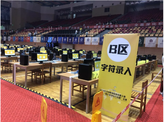 賽場分為ABCD四大區(qū)域,A傳票算,B字符錄入,C手工點鈔,D貨幣識假。選手們根據(jù)各自的賽項熟悉賽場環(huán)境。