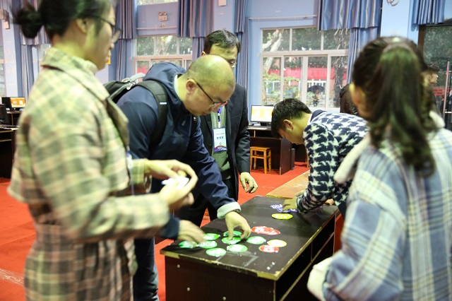 針對本次大賽,裁判長鄭興教授與技術(shù)支持單位(深圳智盛信息技術(shù)股份有限公司)對比賽細(xì)節(jié)召開了賽前研討會。各院校領(lǐng)隊(duì)老師對本次比賽極為重視,踴躍提問,仔細(xì)聆聽,不錯(cuò)過任何一個(gè)環(huán)節(jié)。