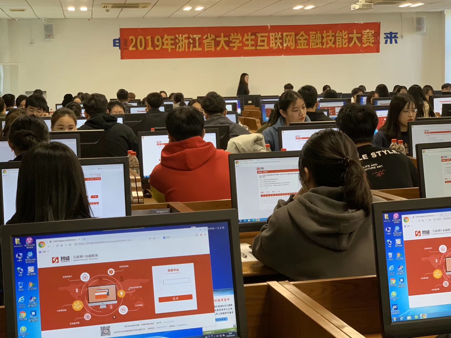 1月15日,由浙江省教育廳主辦,浙江金融職業(yè)學院承辦的2019年浙江省“互聯(lián)網(wǎng)金融技能大賽”在信息樓隆重舉辦。本次競賽,共有來自省內(nèi)的27個學校、52支隊伍和省外2個學校、3支隊伍共220名參賽選手進行現(xiàn)場角逐。
