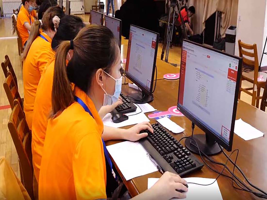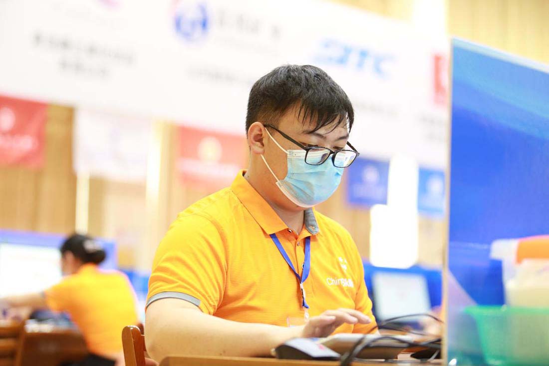 6月11日上午,選手們檢錄進(jìn)場后,9點準(zhǔn)時開始比拼數(shù)字金融業(yè)務(wù)操作賽項,選手們迅速適應(yīng)比賽環(huán)境,與隊友們一起溝通、協(xié)作,沒有絲毫松懈,全力投入比賽。