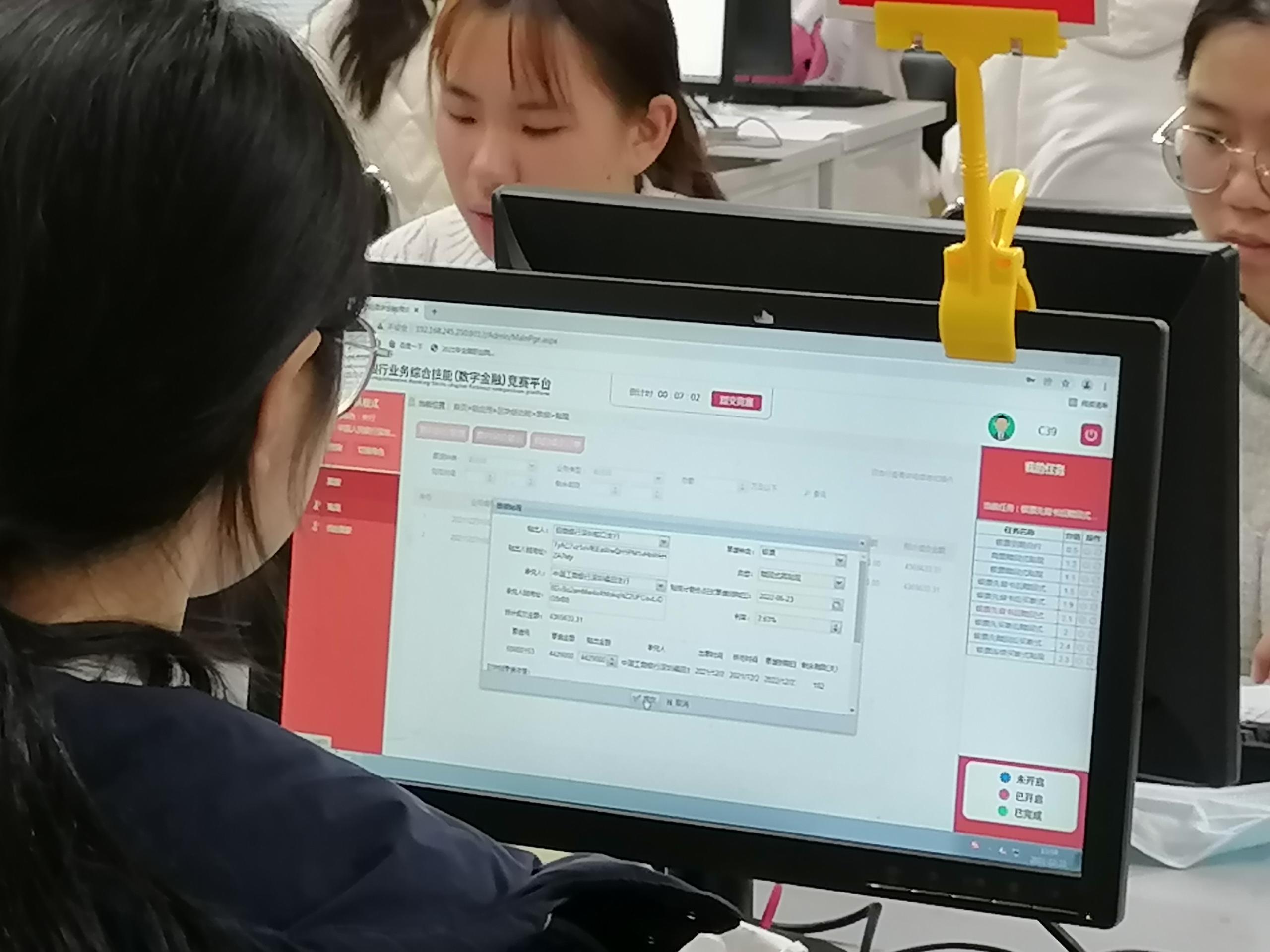 “銀行核心業(yè)務(wù)崗位操作”主要考核選手對柜面業(yè)務(wù)處理流程及規(guī)范的掌握。“數(shù)字金融業(yè)務(wù)操作”考核選手對大數(shù)據(jù)金融的分析與應(yīng)用處理能力,量化金融的綜合能力和區(qū)塊鏈金融中不同應(yīng)用場景工作崗位的專業(yè)技能。