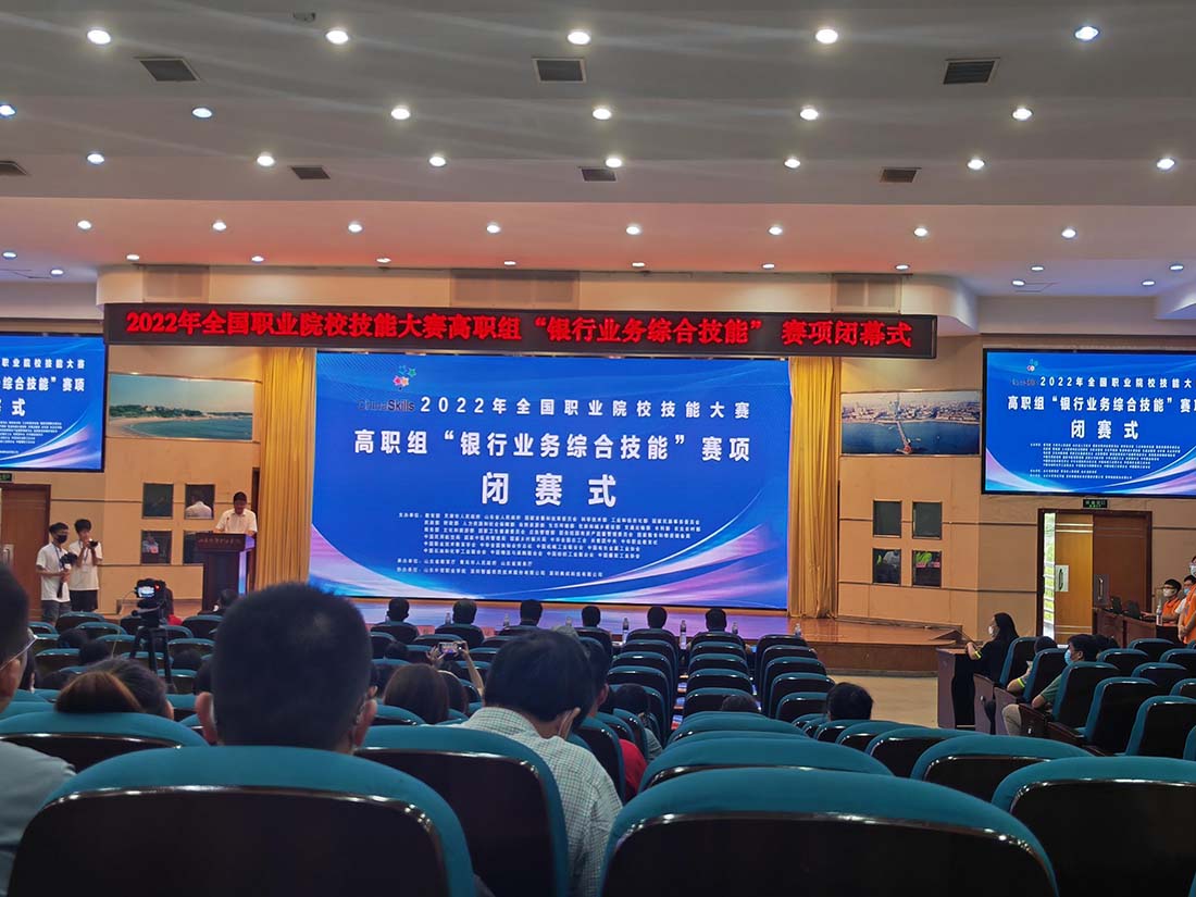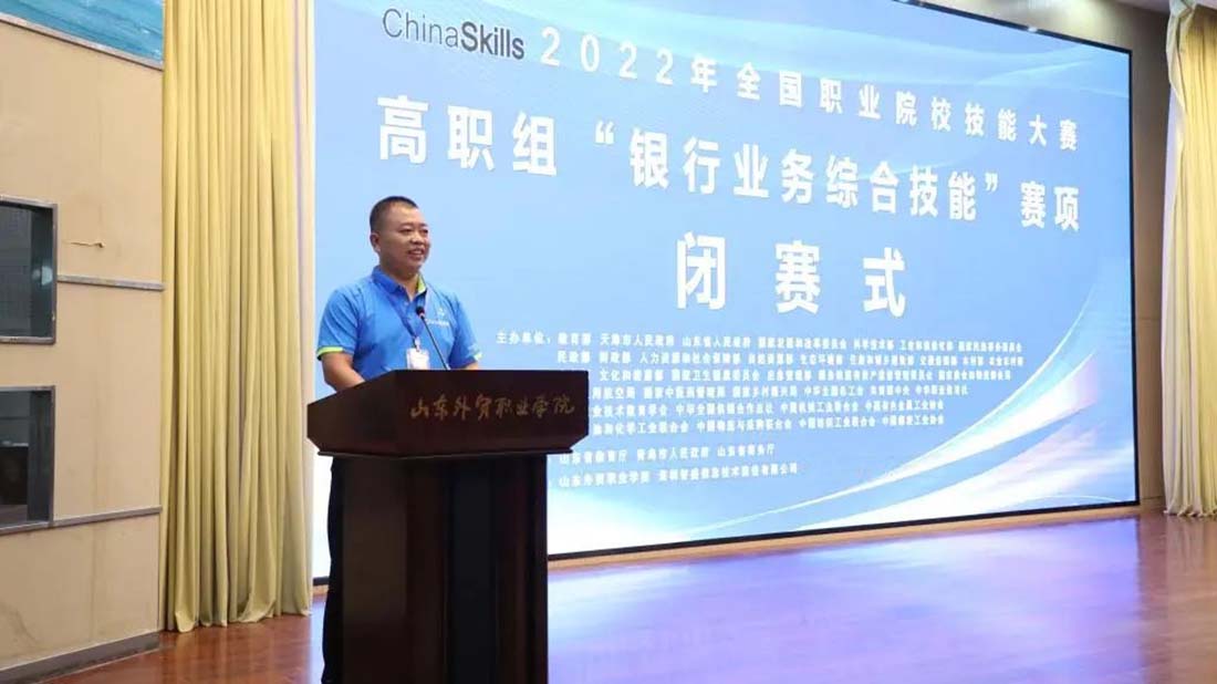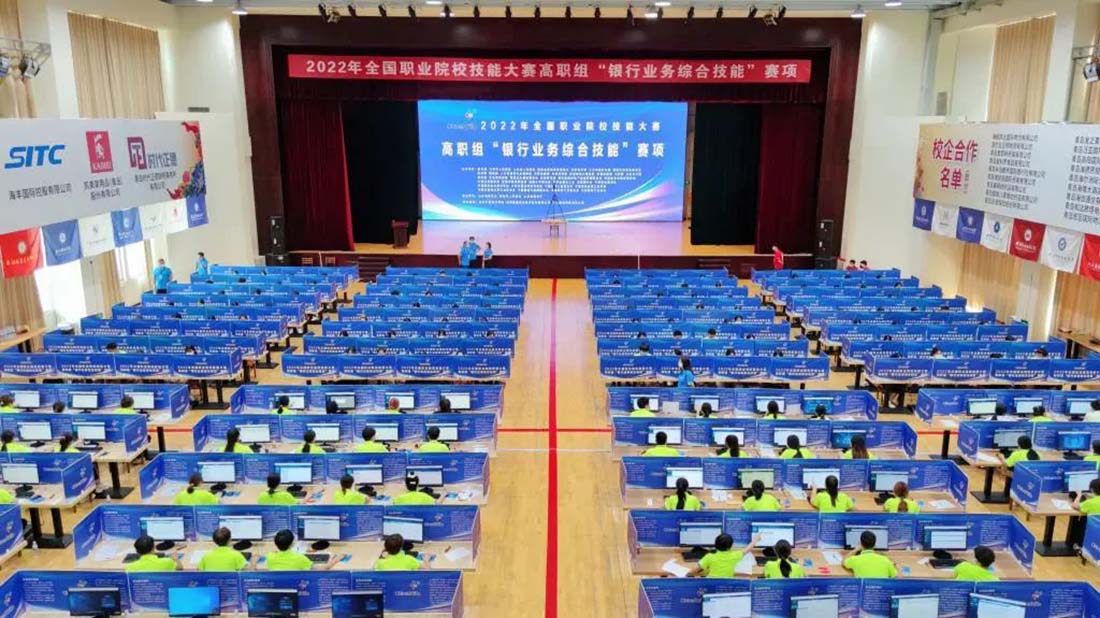 2022年8月14日至15日,由教育部、天津市人民政府、山東省人民政府、國(guó)家發(fā)改委聯(lián)合其他國(guó)家部委主辦,山東省教育廳、青島市人民政府、山東省商務(wù)廳承辦,山東外貿(mào)職業(yè)學(xué)院、深圳智盛信息技術(shù)股份有限公司協(xié)辦的2022年全國(guó)職業(yè)院校技能大賽高職組“銀行業(yè)務(wù)綜合技能”賽項(xiàng)圓滿落下帷幕!來(lái)自全國(guó)28個(gè)省、直轄市、自治區(qū)(不含港澳臺(tái))的55個(gè)學(xué)校55支代表隊(duì)220名選手在嚴(yán)格遵守當(dāng)?shù)叵嚓P(guān)防疫要求前提下同臺(tái)競(jìng)技,展示技能風(fēng)采。